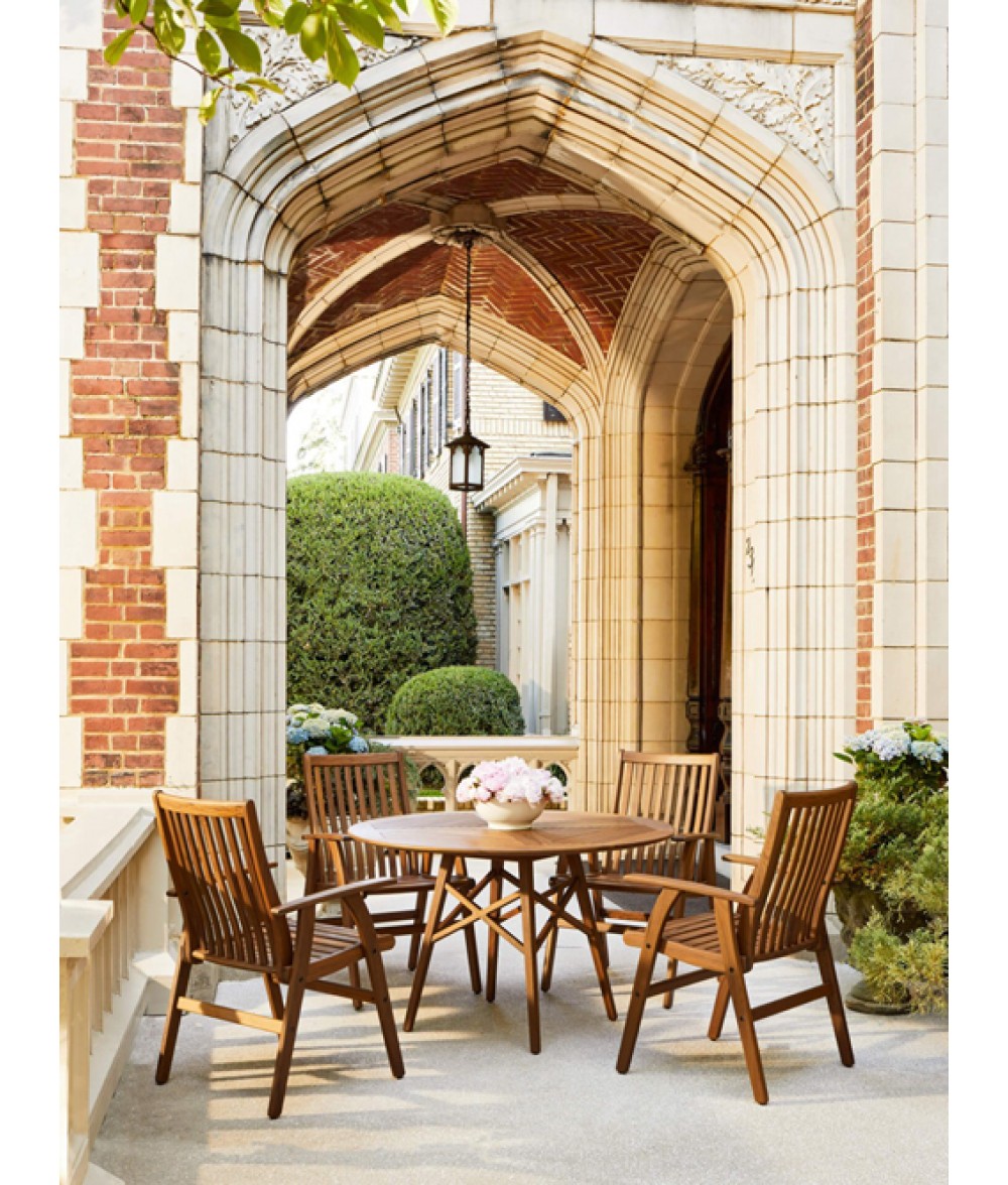 The handsome lines and chiseled contours of the Franklin Dining Arm Chair, a new addition to the Heritage Collection (formerly Classic Ipe), highlight the artisan craftsmanship and responsible use of 100% FSC®-Certified Ipe timber sustainably harvested from the remote, dry-tropical forests of Bolivia. Remarkably durable and resilient to weather and wear, the rich, chocolate brown color of Ipe timber upon arrival can be preserved with occasional care or allowed to gracefully age into a subtle silver patina that makes it welcome in any setting. While designed to be naturally comfortable, an optional cushion is available in an array of distinctive Sunbrella® fabrics.