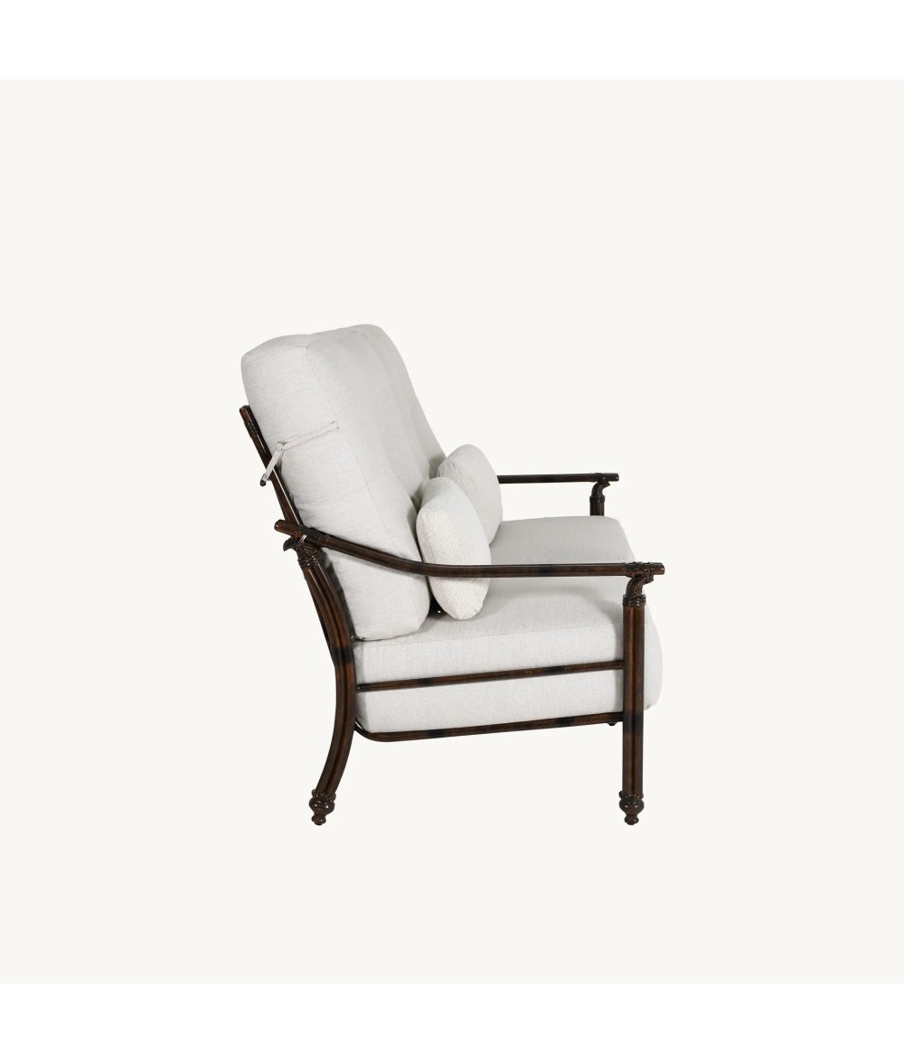 The Coco Cushioned Loveseat offers an intimate seating option that doesn't compromise on style or comfort. With a sculpted aluminum frame and handcrafted details that evoke natural rattan, it brings a soft, coastal feel to patios, porches, or garden spaces. Two plush cushions provide support for relaxed conversations or quiet afternoons outdoors. Built from durable cast and extruded aluminum, it’s designed to withstand the elements with ease. Made to order in your choice of Castelle fabric and finish, the loveseat is a seamless fit for personalized outdoor layouts.
