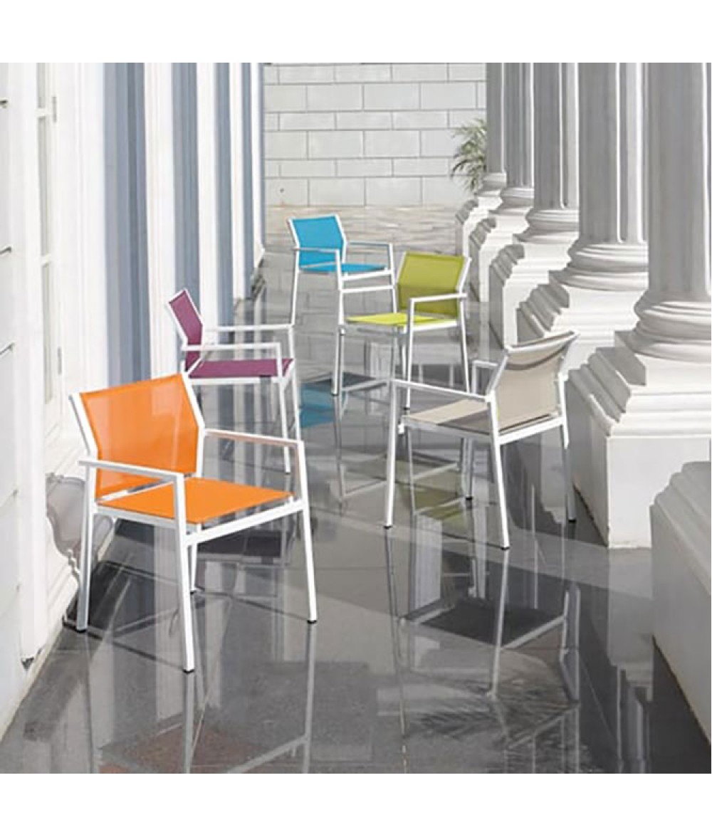 Tags: Seating, Dining, Chair, Armchair, Aluminum, Stackable, Sling Mesh, Batyline