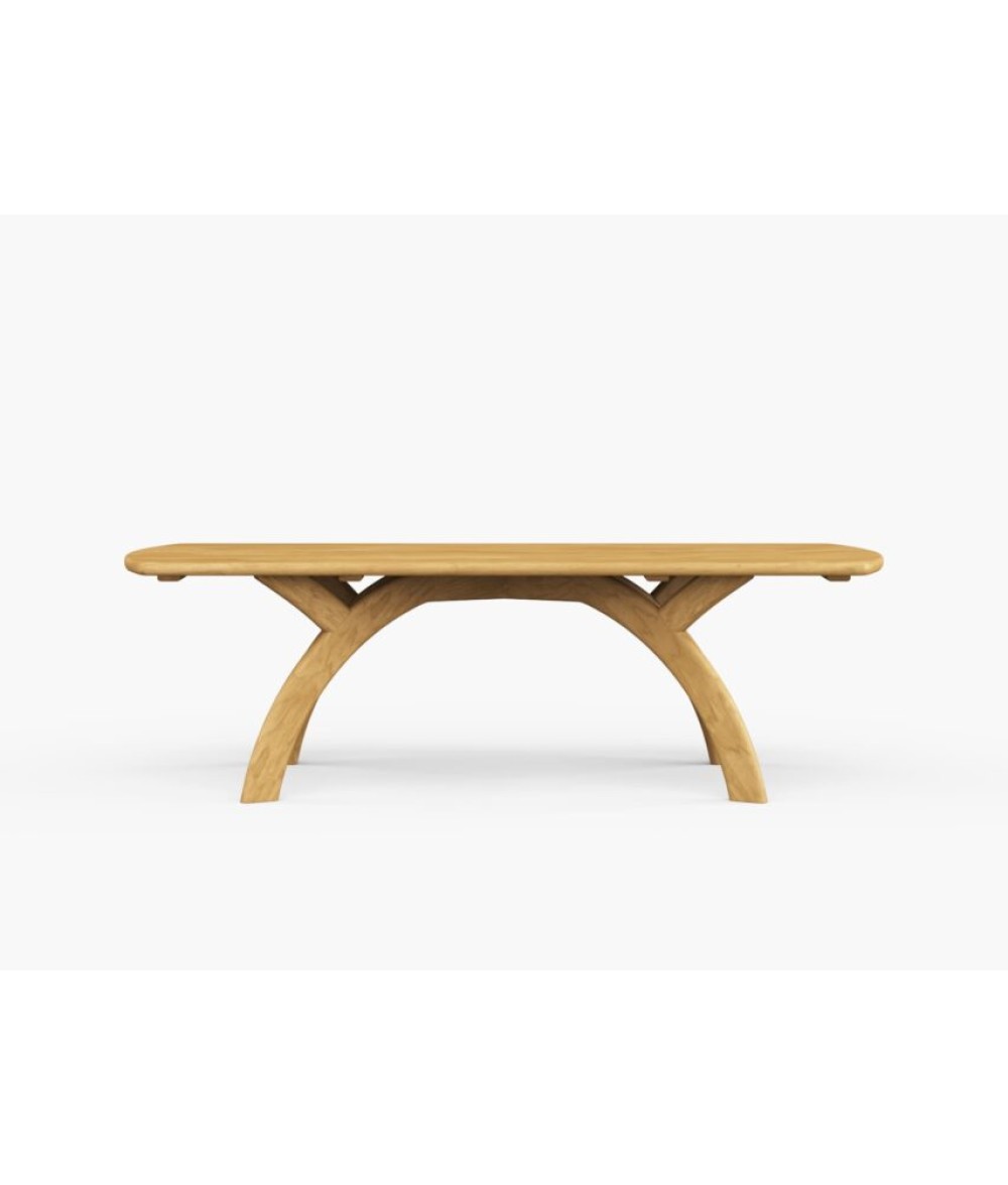 - Solid slats of teak timber form the spacious tabletop and artfully-curved table legs base and chiseled legs for entertaining ease and elegance.